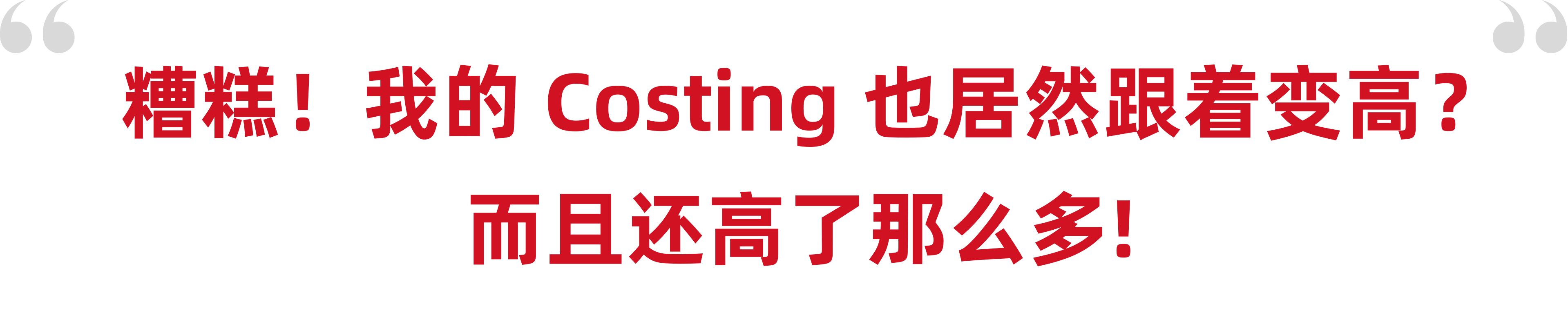 部分 Costing 上涨的原因,还包括了一些你控制不了的因素,比如: 因为美联储加息,假设世界政治局势不稳,导致马币大幅度贬值。