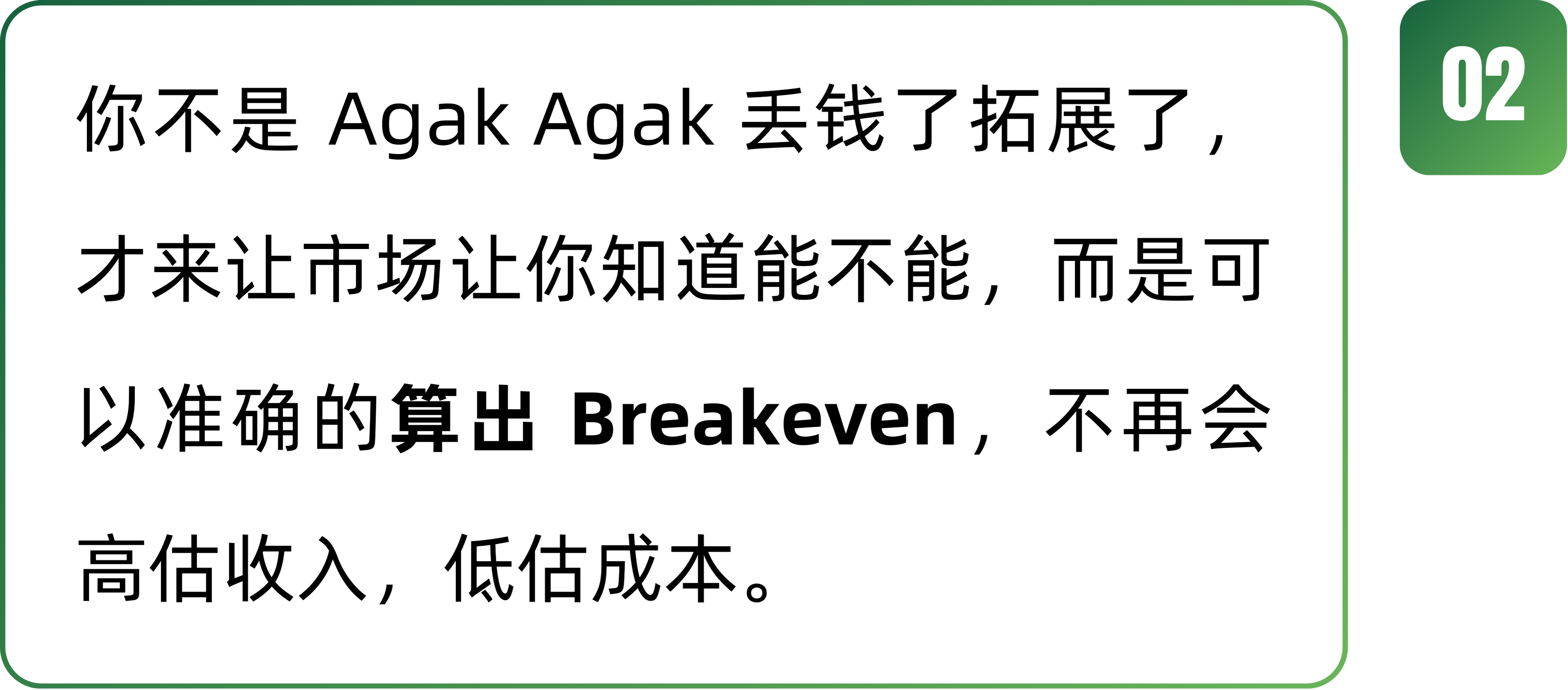 由于公司还有一堆员工要养、租金要付、设备要供... 你只能在努力把公司壮大,把 Gross Profit变高,于是你开始: 推出更多的新项目、增加更多的新渠道、研发更多的新产品。