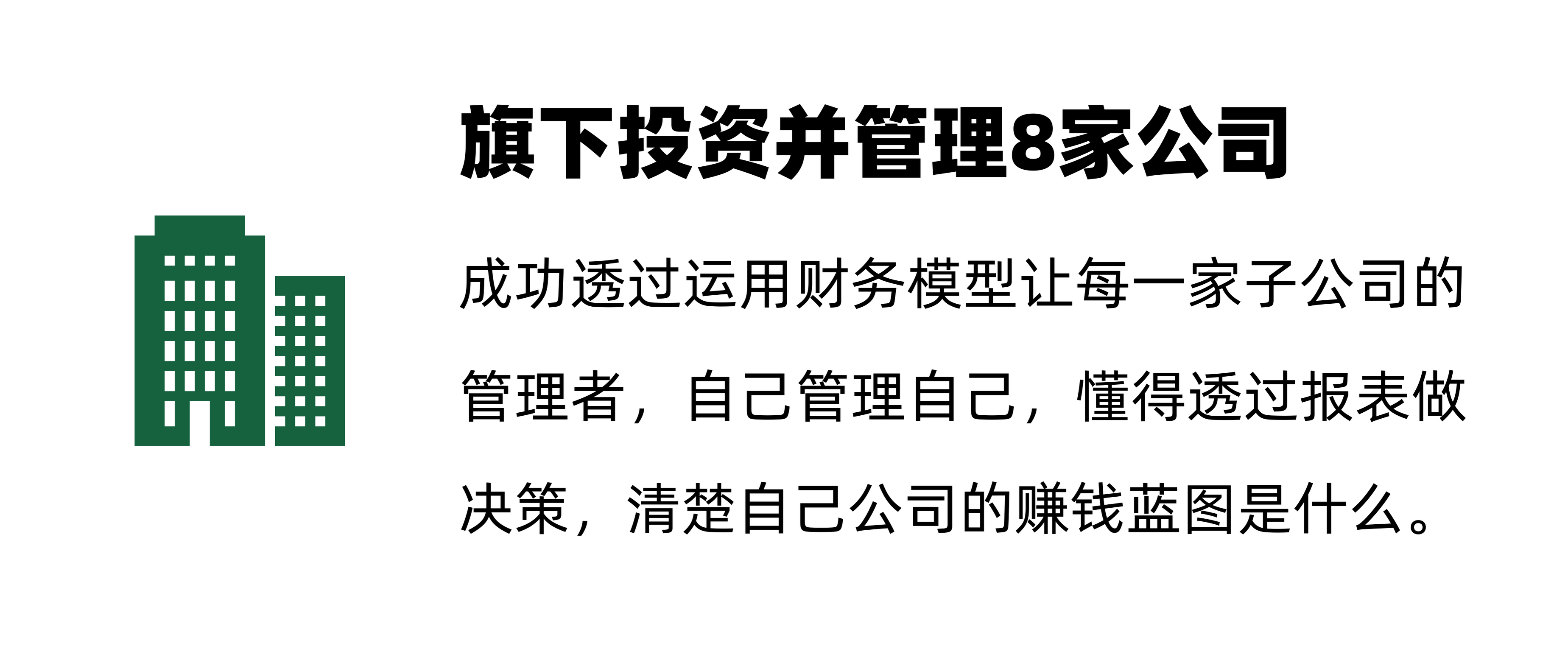 即使市场不好、经济不好的情况下,还是可以开更多分行、建立很多的厂、团队不断增长。